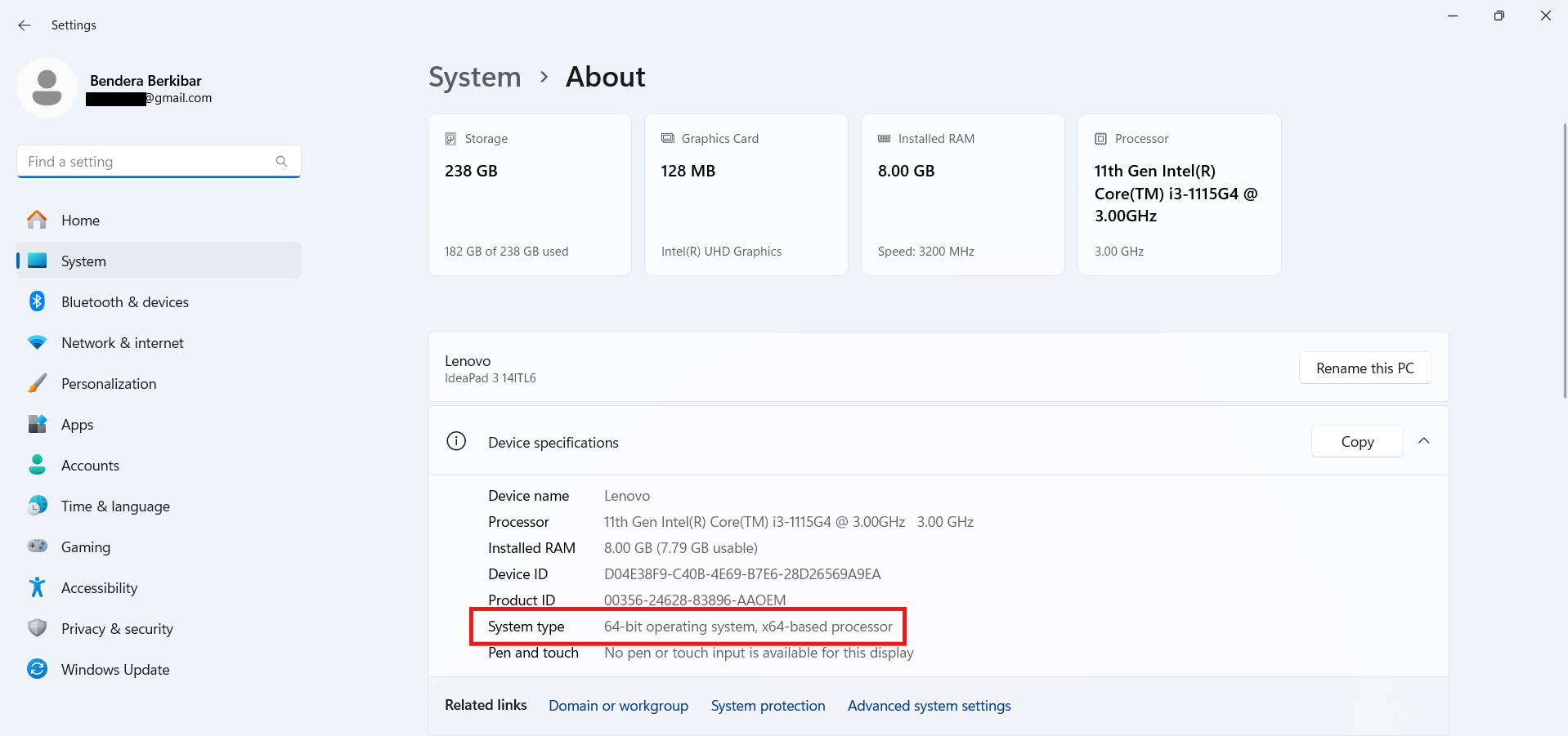 Windows 11 tidak memiliki versi 32-bit dan hanya 64-bit. Untuk mengonfirmasi: