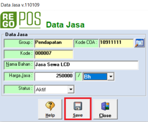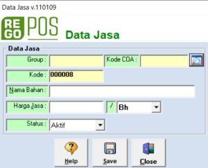 - Kode COA, pilih COA yang digunakan untuk jasa.