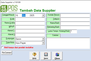 - Catatan, masukkan catatan terkait dengan supplier.