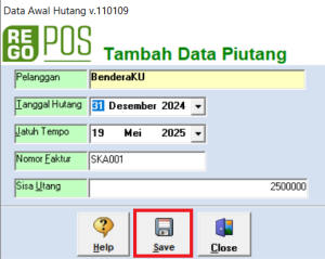 - Tanggal Hutang : masukkan tanggal hutang.