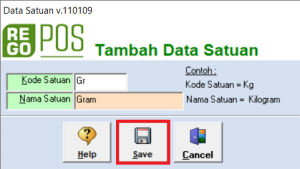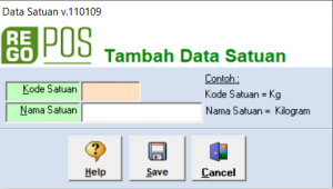 - Kode Satuan, masukkan kode satuan (contohnya Kg, Ml, Gr, dll).