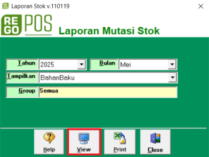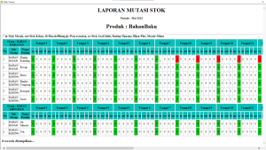 Langkah 4. Aplikasi Restoran REGORESTO akan menampilkan Laporan Mutasi Stok dengan tanggal atau bulan yang dipilih.